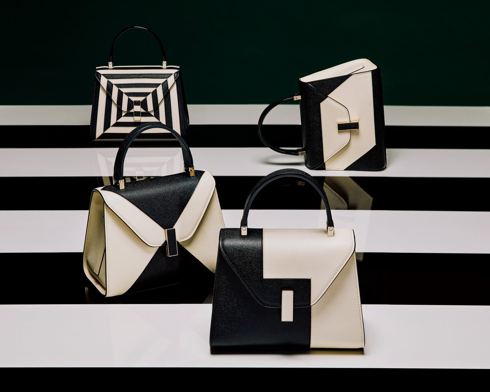 印象的な黒と白、ソフトな表面とハードな表面のテクスチャー、直線と曲線のラインが対照的で互いを引き立て合い、ヴァレクストラのすべてのレザーグッズの完璧な均衡と個性を映し出す、没入感のある多感覚的な体験を作り出します。