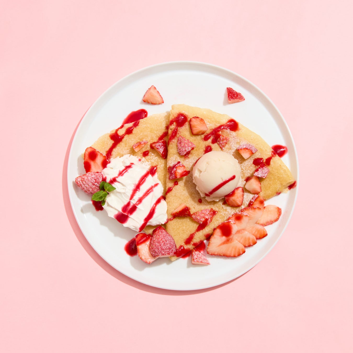 旬のイチゴをたっぷり、TUTTOのもっちりのヴィーガンクレープ生地と豆乳クリームでお召し上がりください。