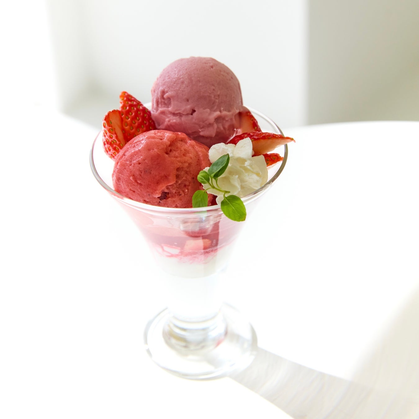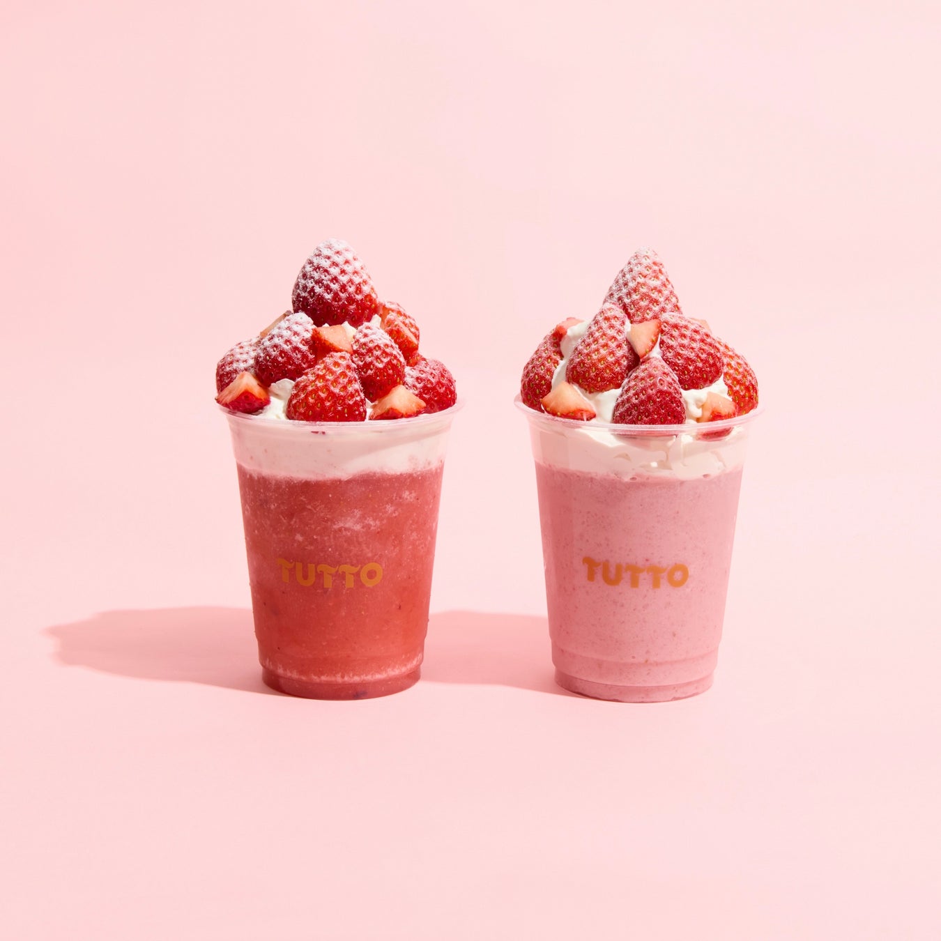 アーモンドミルクベースのミルキーな味わいのストロベリーミルク。すっきりした味わいのソルベベース、あまおうハイビスカス。TUTTOの人気のストロベリーフレーバー2種を旬のフレッシュ苺とご一緒にお楽しみください。クリーミーな豆乳クリームと甘酸っぱいフランボワーズピューレ、アーモンドクランチを絡めてお召し上がりいただくと更に色んな味わいをお楽しみいただける1品になっています。