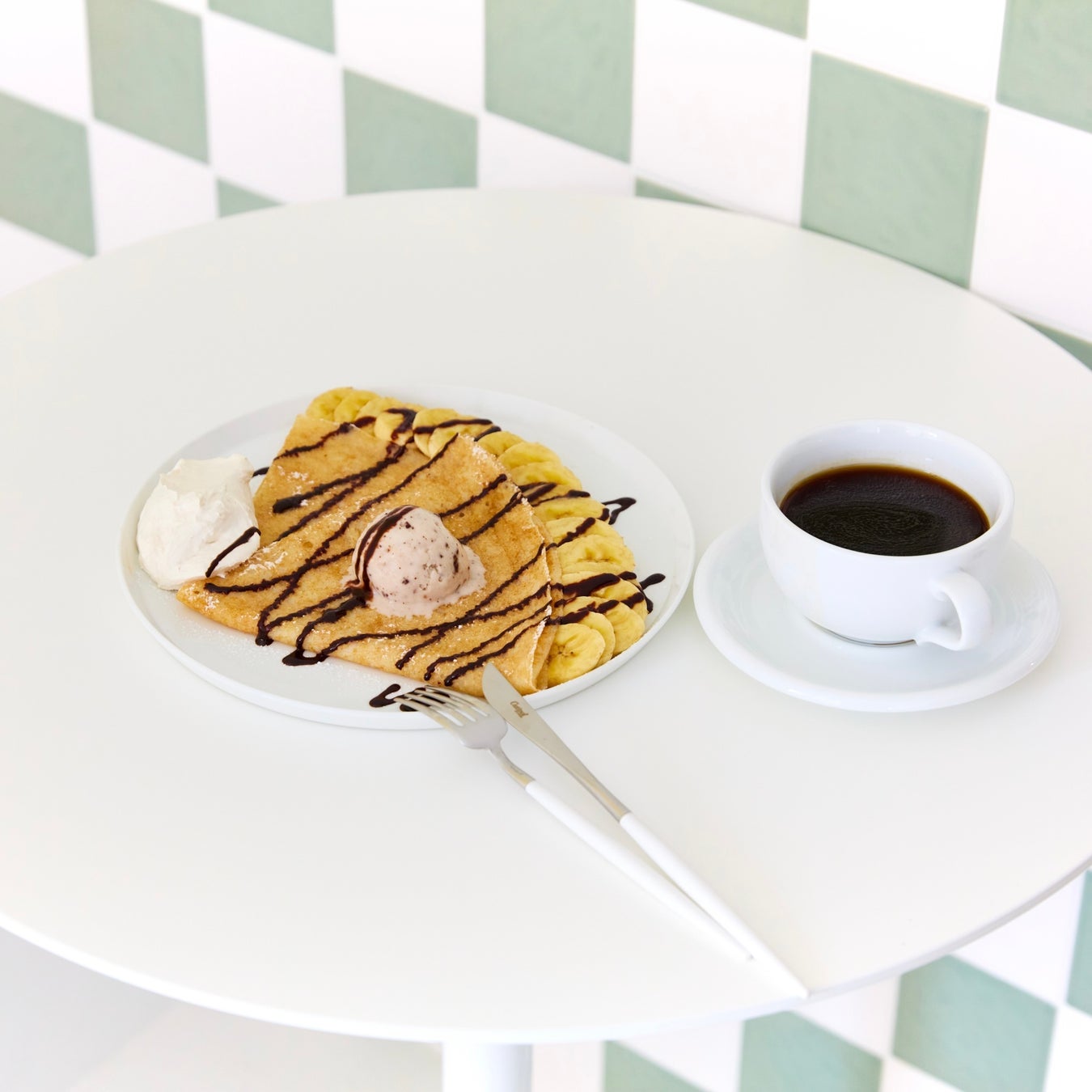 カフェとしても店内でゆっくりとお過ごしいただけるように、店内10席(5テーブル)、テラス6席(3テーブル)をご用意しております。ジェラート以外にも、お皿に盛り付けられたクレープや、サンデーなど、清澄白河店とは一味違ったTUTTOのメニューをお楽しみください。