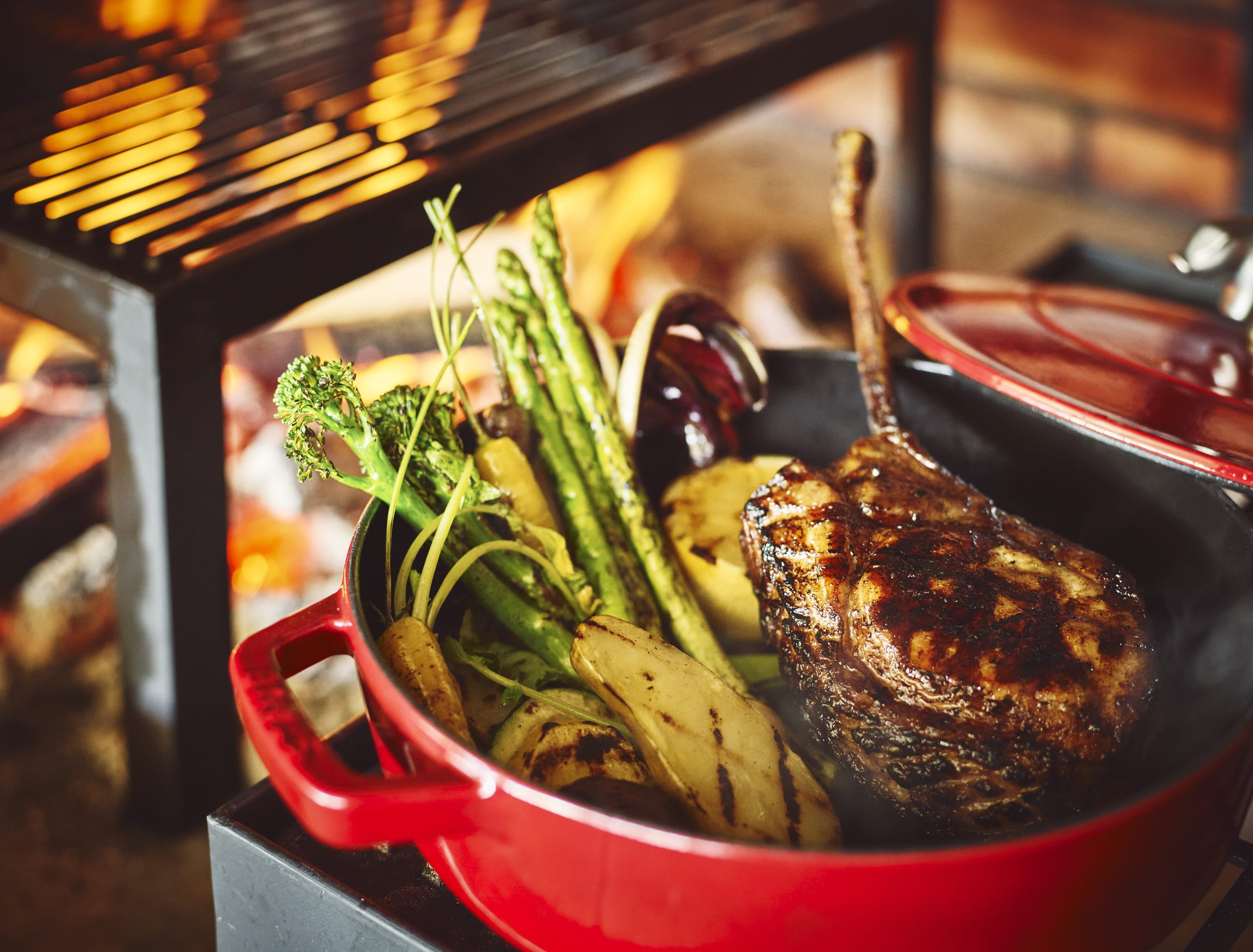 本プランでは、1周年特別ディナーや朝食、タイ発祥の名門スパ「ザ・スパ by HARNN」のボディトリートメントやトラベルキットのお土産、ウェルカムドリンクが付いており、ホテルインディゴ軽井沢の魅力を余すことなくご体感いただけます。特別ディナーは、薪火イタリアンオールデーダイニング「KAGARIBI」のシグネチャーメニューを組み合わせたコースをご用意。軽井沢、信州の旬な地野菜を使ったサラダやスープ、魚介のペスカトーレ、ご好評いただいております「骨付き信州豚の薪グリル」などをご堪能いただけます。