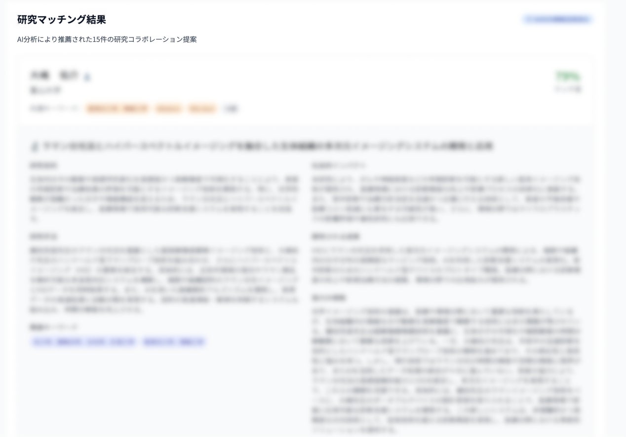 「Memory AI for Academia」は、研究テーマ・助成金獲得履歴・論文・特許傾向・研究者の興味などを基に、研究者間の“協働ポテンシャル”を算出するAIマッチング技術です。