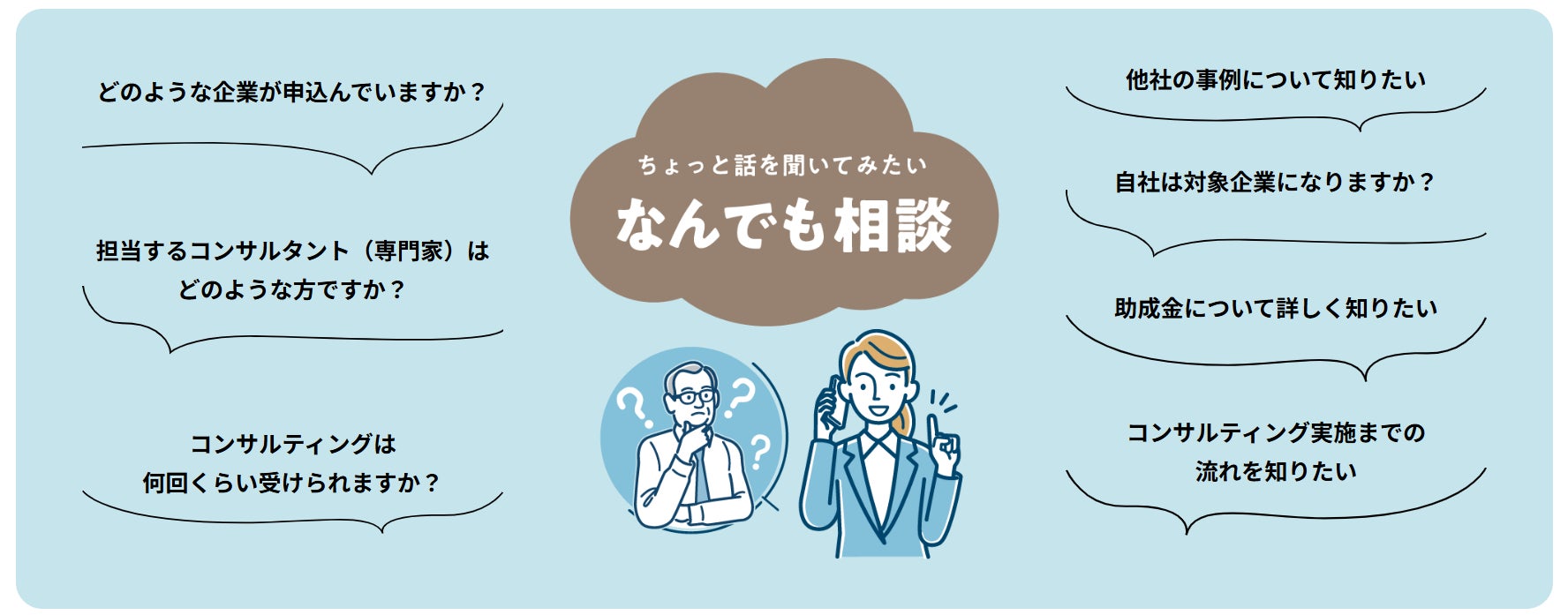 ヒアリングの結果、コンサルティングや助成金等、必要に応じて適切なご案内をします。