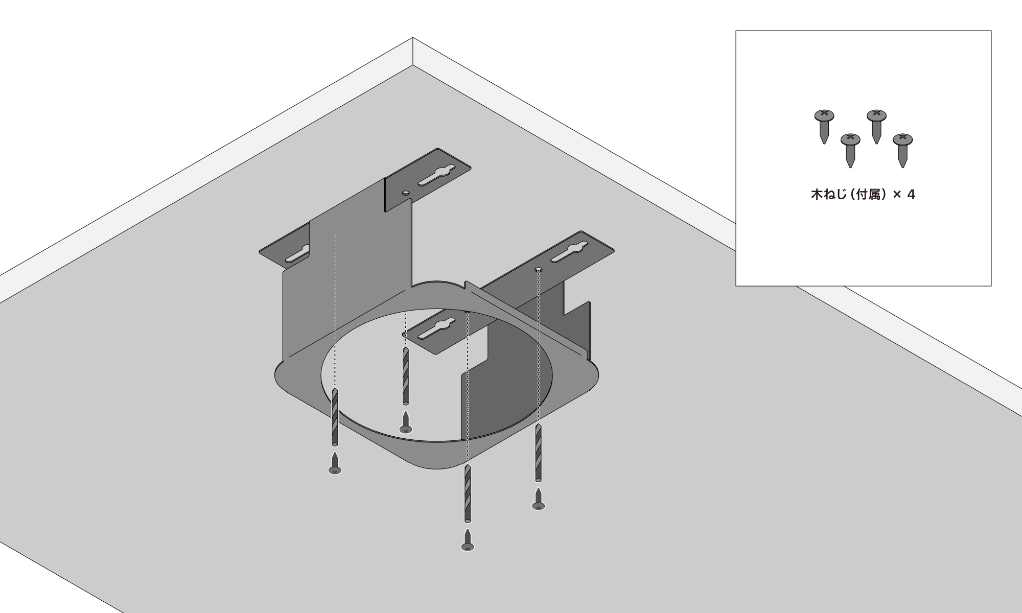 Mount for Mac Studio は 3WAY の取り付け方法に対応したデザインになっており、PREDUCTS DESK だけでなく一般的な木材の天板にも付属の木ネジを使用することにより取り付け可能です。