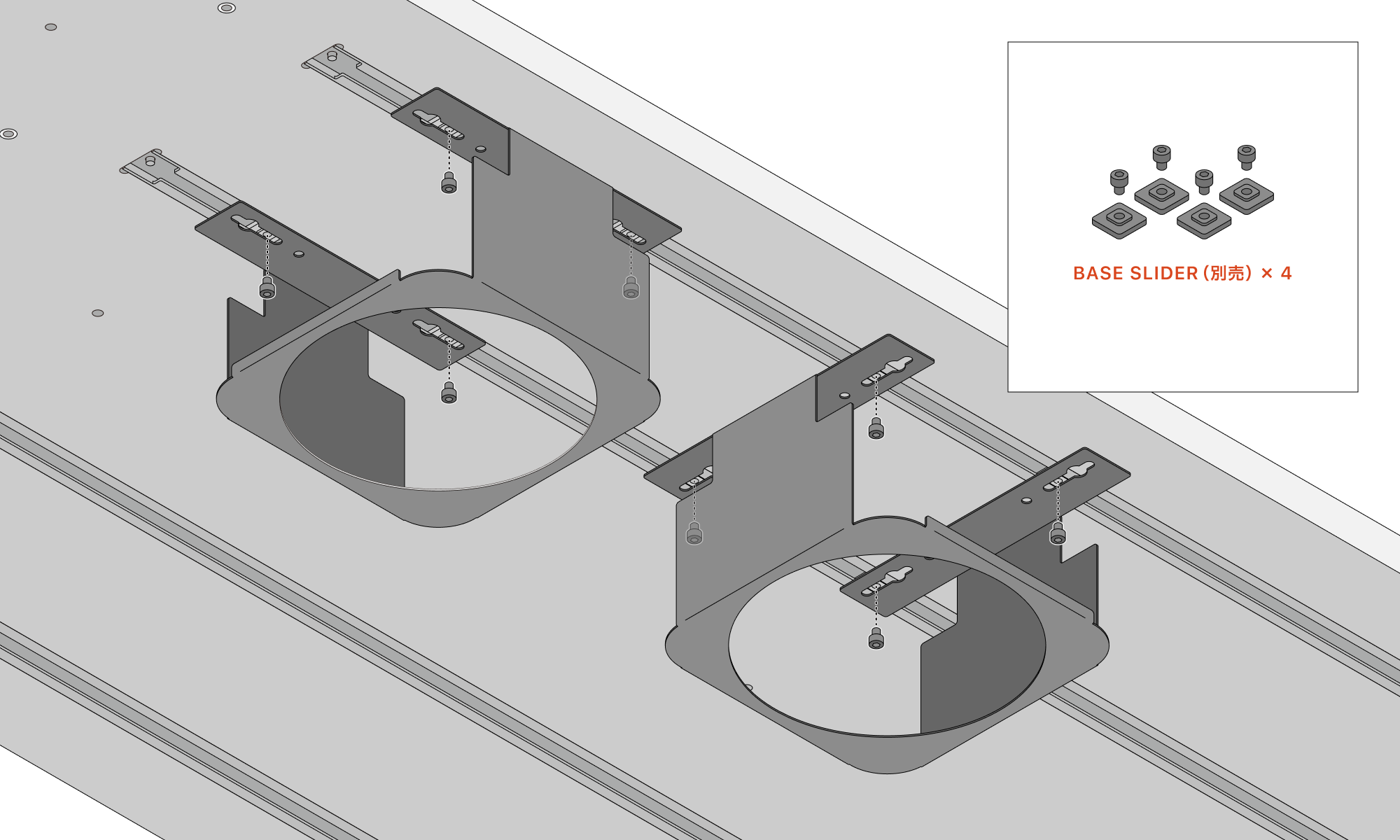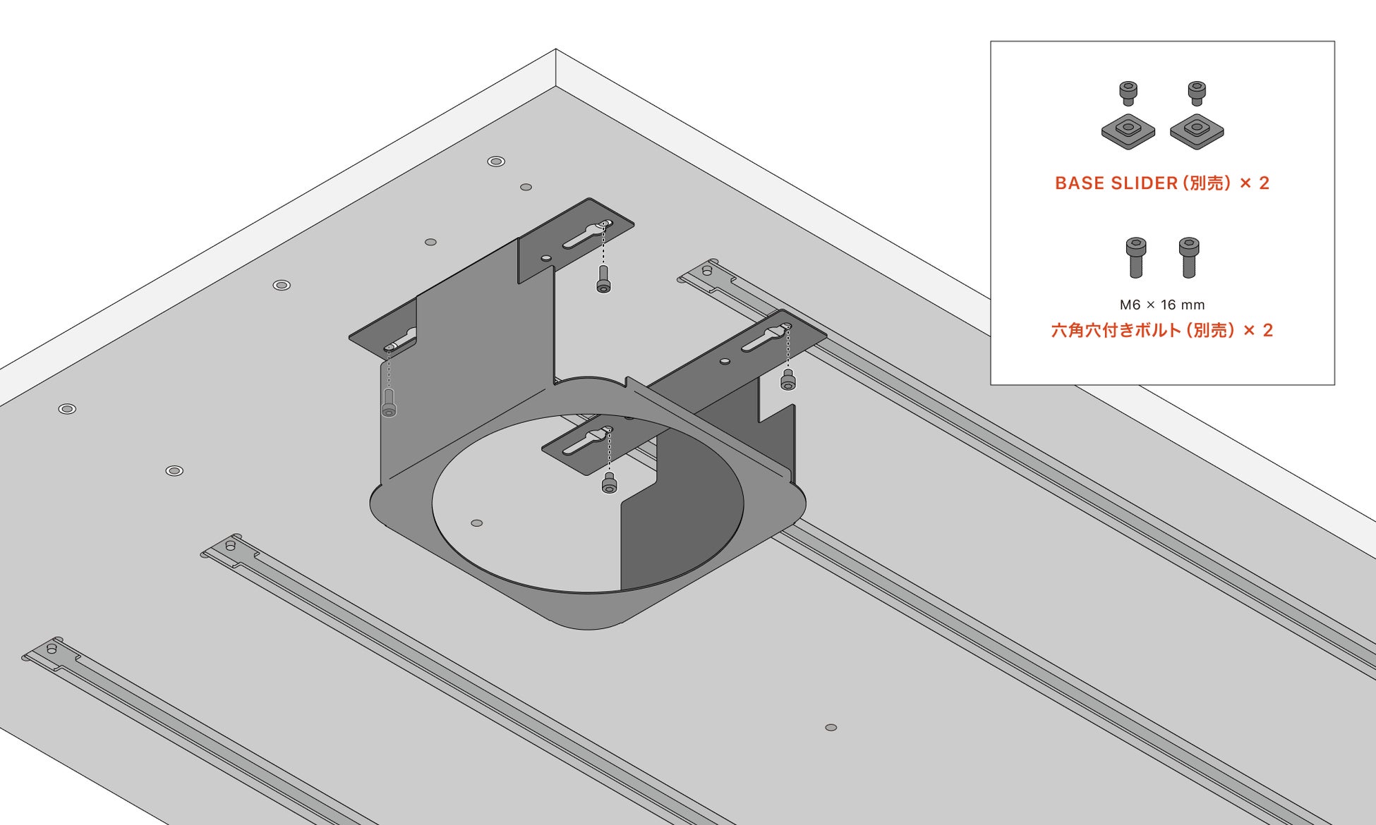 Mac Studio をデスク裏にマウントすることにより煩わしいケーブルもデスク裏に収納し、デスクの上をすっきり広々とご利用いただけるモジュールです。
