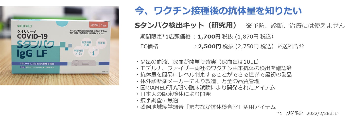 販売中の検査キットは薬王堂全店舗およびECサイトでご購入できます。