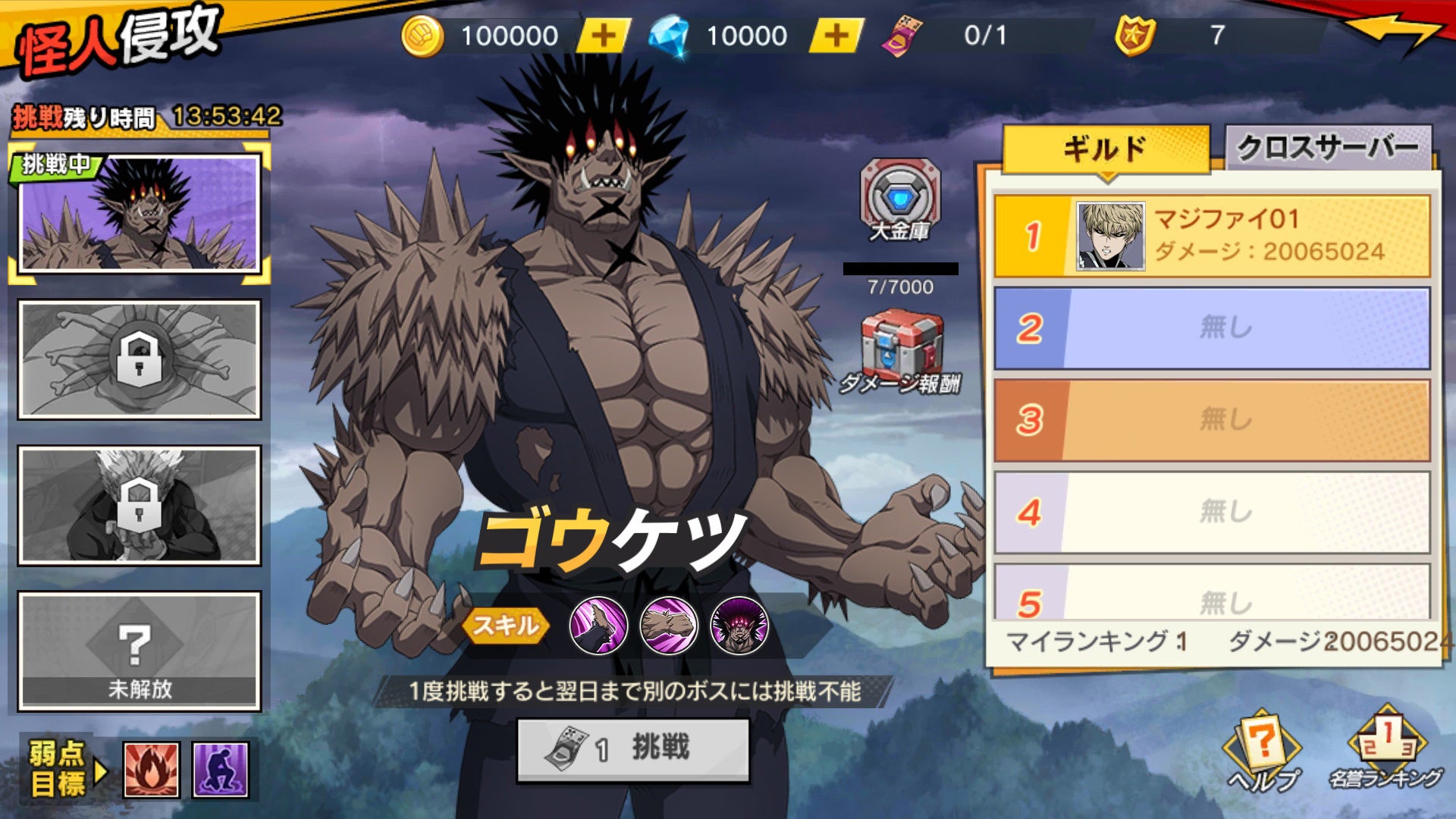 さらに、ギルドメンバーがボスに挑戦するたびに獲得できる挑戦コインが指定の数に到達すると、大金庫が開放され豪華報酬をゲットできます。