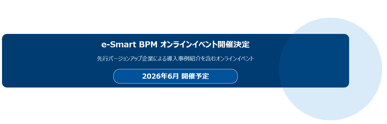 e-Smart BPMは、デジタル化・AI導入補助金2026(旧IT導入補助金)の対象製品として申請中です。中小企業・小規模事業者のお客様が本補助金を活用することで、導入費用の一部を補助金で賄うことが可能となり、より低いハードルでDX推進に着手いただけます。