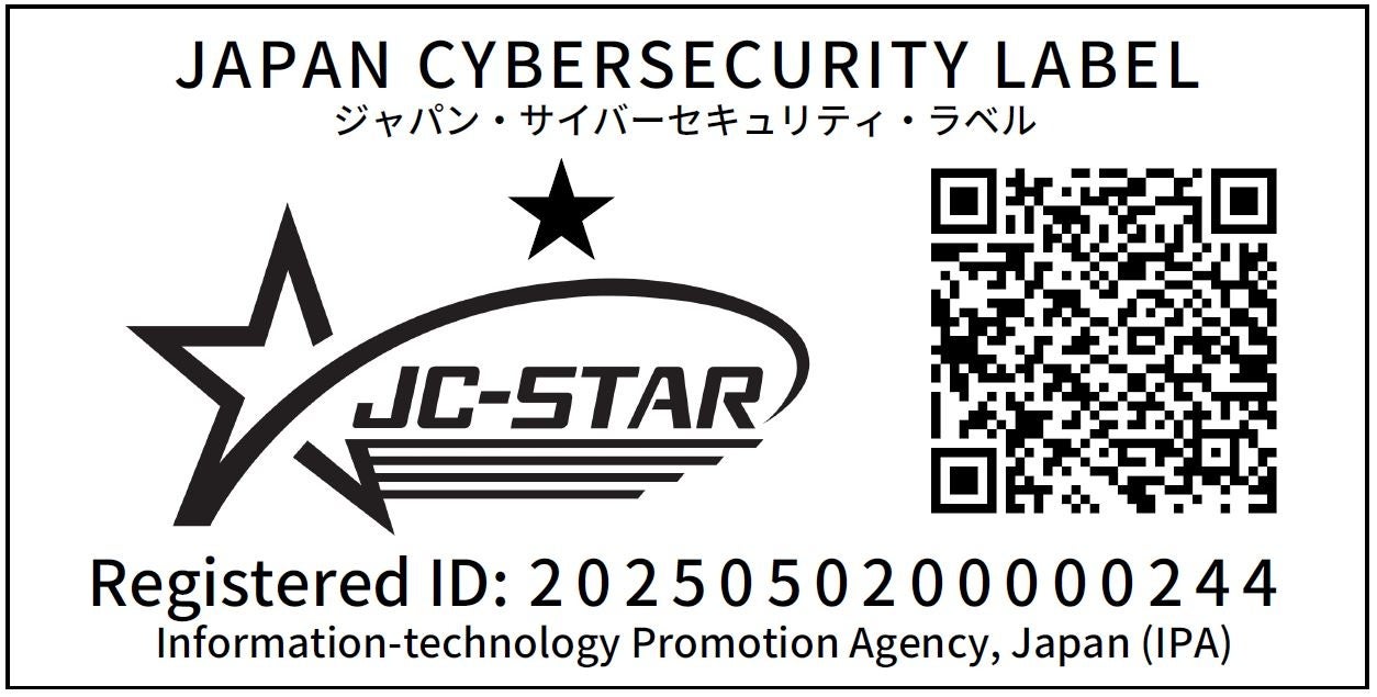 適合ラベルは、本制度で定められた基準への適合を示すもので、IoT製品が予め具備するセキュリティ機能として満たすべき水準にあることが確認されたことを意味します。JC-STAR ★1適合取得製品のリストは、ラベルのQRコードからご確認いただけます。また、適合製品のデータシートにもラベル掲載を行ってまいります。