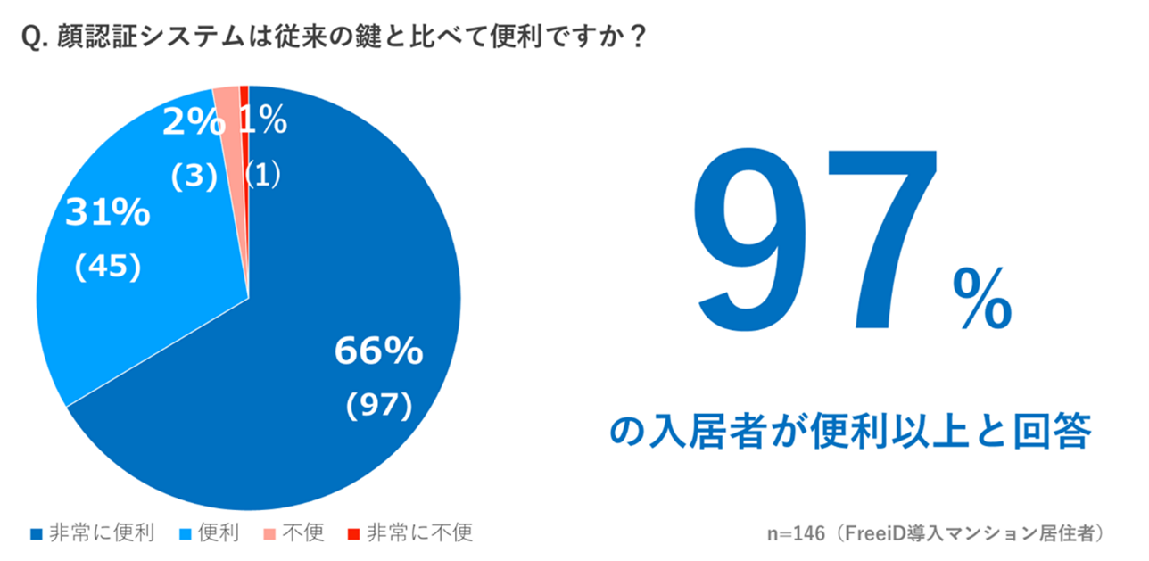 - 入居者のうち、97%が従来の鍵より”顔認証は便利”と回答