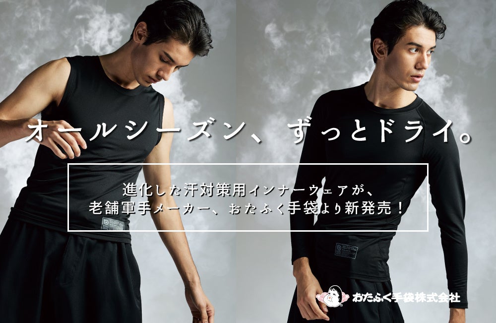 新商品 「ドラスティックドライ」 のインナーウェアは、汗をかいた際の不快感を解決する、オールシーズン使えるインナーウェアです。