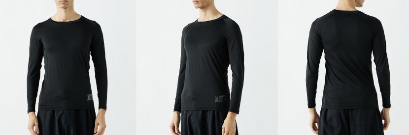 今までBODY TOUGHNESSから販売していた汗対策用のインナーウェアは、透け透けのメッシュ素材だったため、見た目的に一枚では着用しづらく、重ね着用として販売してきました。