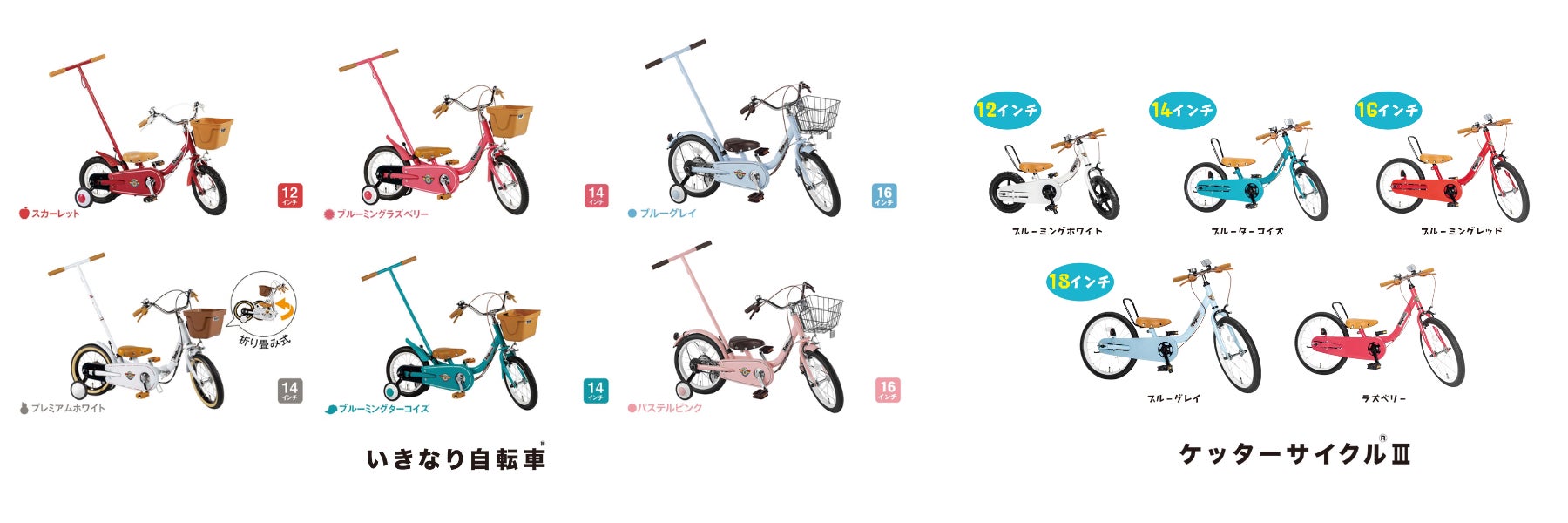 子どもの体格に合わせた独自設計で、成長しても乗りやすく「最長5年、長く乗れる」幼児用自転車ブランドです。「ケッターサイクルIII」や「いきなり自転車」など、お子さまのタイプや好み・年齢に合わせて選べる多彩なシリーズを展開し、お子さまの自転車デビューを応援します。