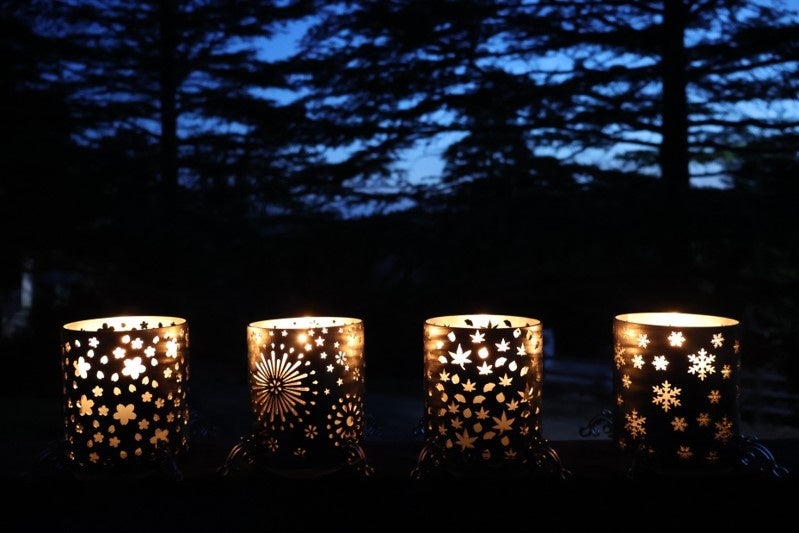 ステンレスの端材を利用したアップサイクル品。レーザー加工による精密な切断により、光が漏れる隙間やデザインが緻密に計算されており、キャンドルを灯すと、光と影が美しく広がる幻想的な空間を演出します。春夏秋冬の季節ごとにデザインされたホルダーは、自然の中で四季を楽しむだけでなく、キャンドルホルダーからも四季を味わうことができます。