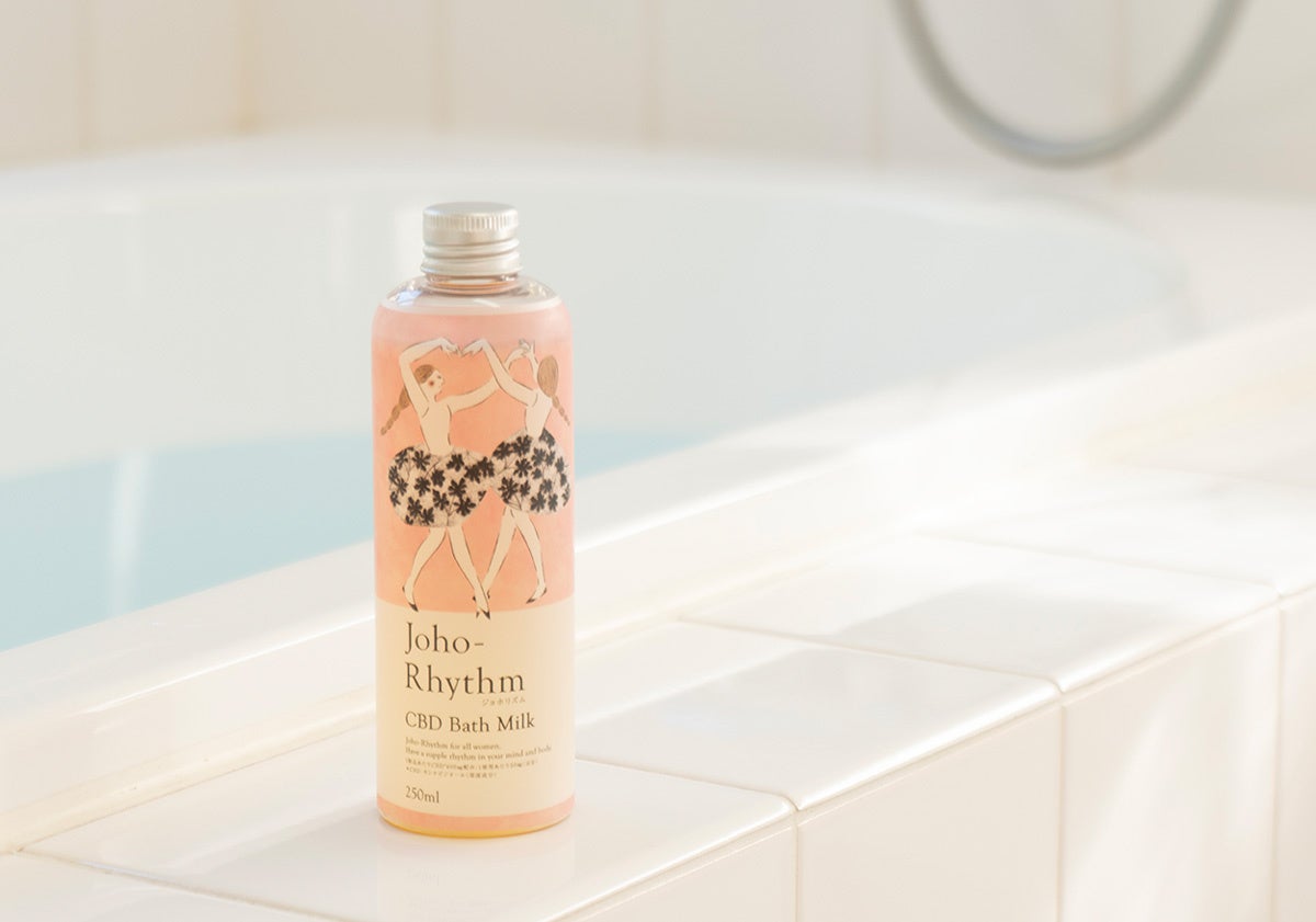 CBD(天然保湿成分)配合の入浴料。ゼラニウム・ブルボン、ダマスクローズ、クラリセージ(いずれも天然芳香成分) などの精油を配合し、甘く爽やかなフローラル調の香り。