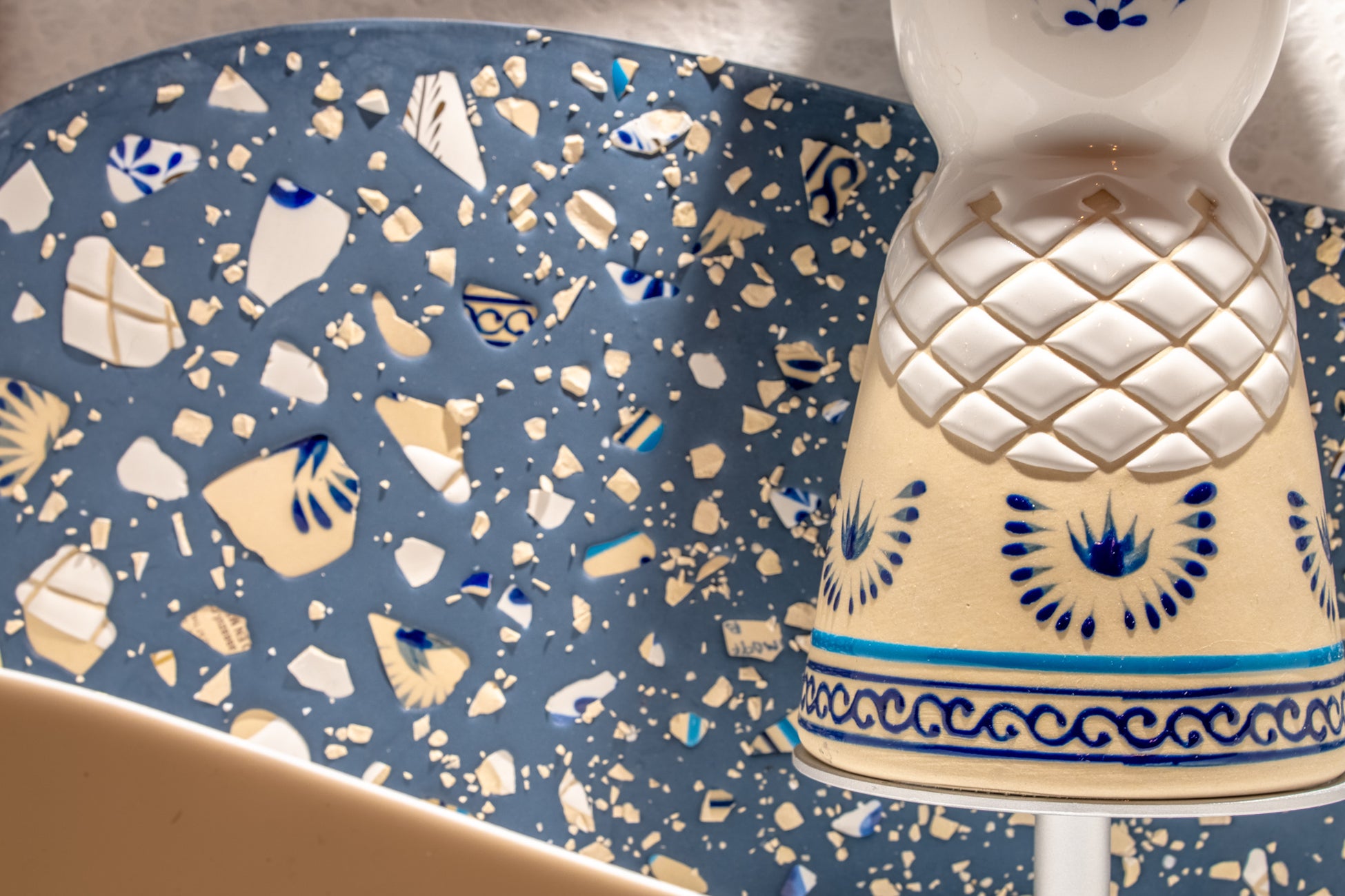 クラセアスールはテキーラやメスカルという1つのアートを通じて、メキシコの美しさと伝統の真価を伝え、世界中の人々のライフスタイルを彩るメキシコ初のラグジュアリーブランドです。高品質なクラフトテキーラを提供するため、機械化が主流となった今でも、長年受け継がれてきた伝統的な製法を守り続けることを大切にしています。目を引くデザインのデキャンタは、陶器の成形からペイントまでハンドメイドで製作されており、製作に携わるスタッフの多くは現地コミュニティの女性で構成されています。