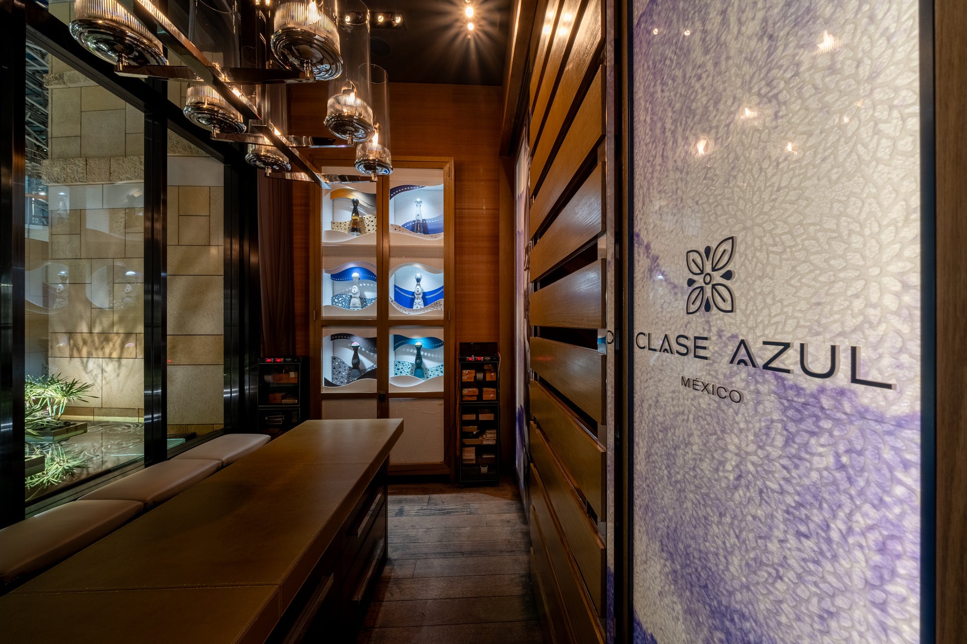 グランド ハイアット 東京のバー&ジャズラウンジ「マデュロ」内にVIPルーム「Room Azul(ルーム・アスール)」。メキシコと日本の伝統文化の融合が楽しめる贅沢なプライベート空間。ルーム内ではクラセアスールの全ラインアップであるテキーラ5種とメスカル2種を提供しております。日本とメキシコの文化のつながりに思いを馳せながら、最高品質のテキーラとメスカルをご堪能ください。