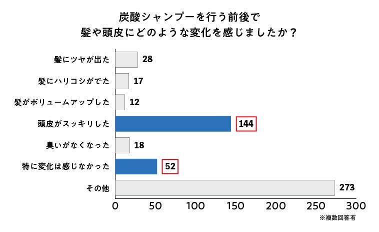 - 炭酸シャンプーをおこなっての変化第1位は「頭皮のスッキリ」感