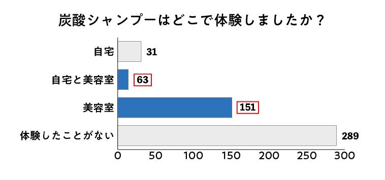 - 炭酸シャンプーを経験した方の約84%が美容室にて経験