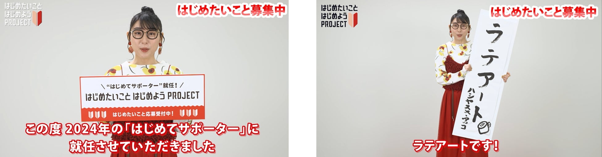 最後に、「はじめたいこと、はじめよう!プロジェクト」公募企画について、昨年の活動報告と今年の活動予定を説明。さらに、参加者の想いや悩みに寄り添って挑戦をサポートする2024年の「はじめてサポーター」に、タレントのハシヤスメ・アツコさんが就任することが発表され、ハシヤスメさんからは熱い応援ビデオメッセージが寄せられました。