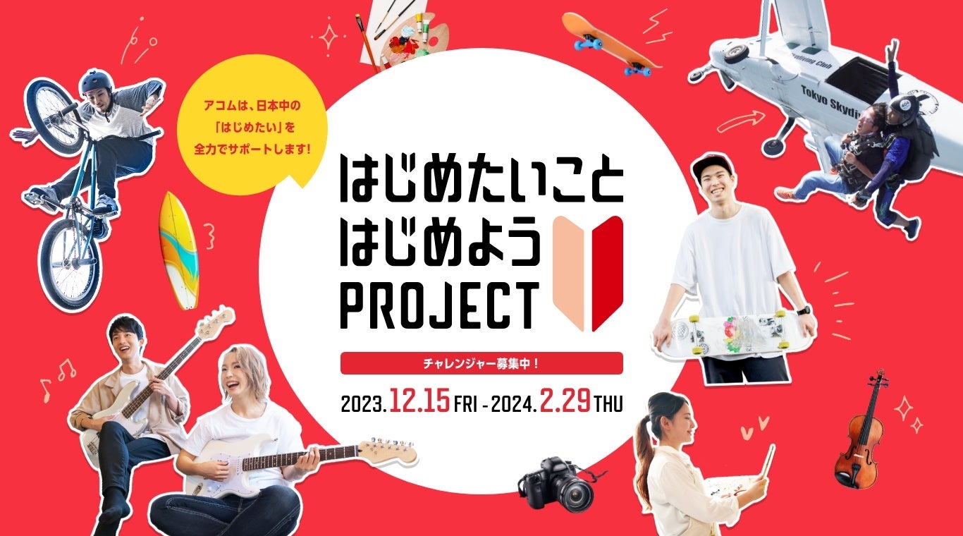 プロジェクトの一環として、公募企画を実施。一般公募から選ばれた挑戦者の“はじめたいこと”を応援するため、アコムがその道のプロフェッショナルである「はじめてコーチ」を派遣し、コーチと二人三脚で”はじめたいこと”を全力でサポートする企画です。前回は、2022年12月からから募集を開始し、 総勢1,142名の「はじめたいこと」の応募の中から、面接等の選考を経て、 「サックスをはじめたい」「エレキギターをはじめたい」「ダンクシュートを決めたい」といった熱い想いを持った3名の”はじめたいこと”を実現いたしました。