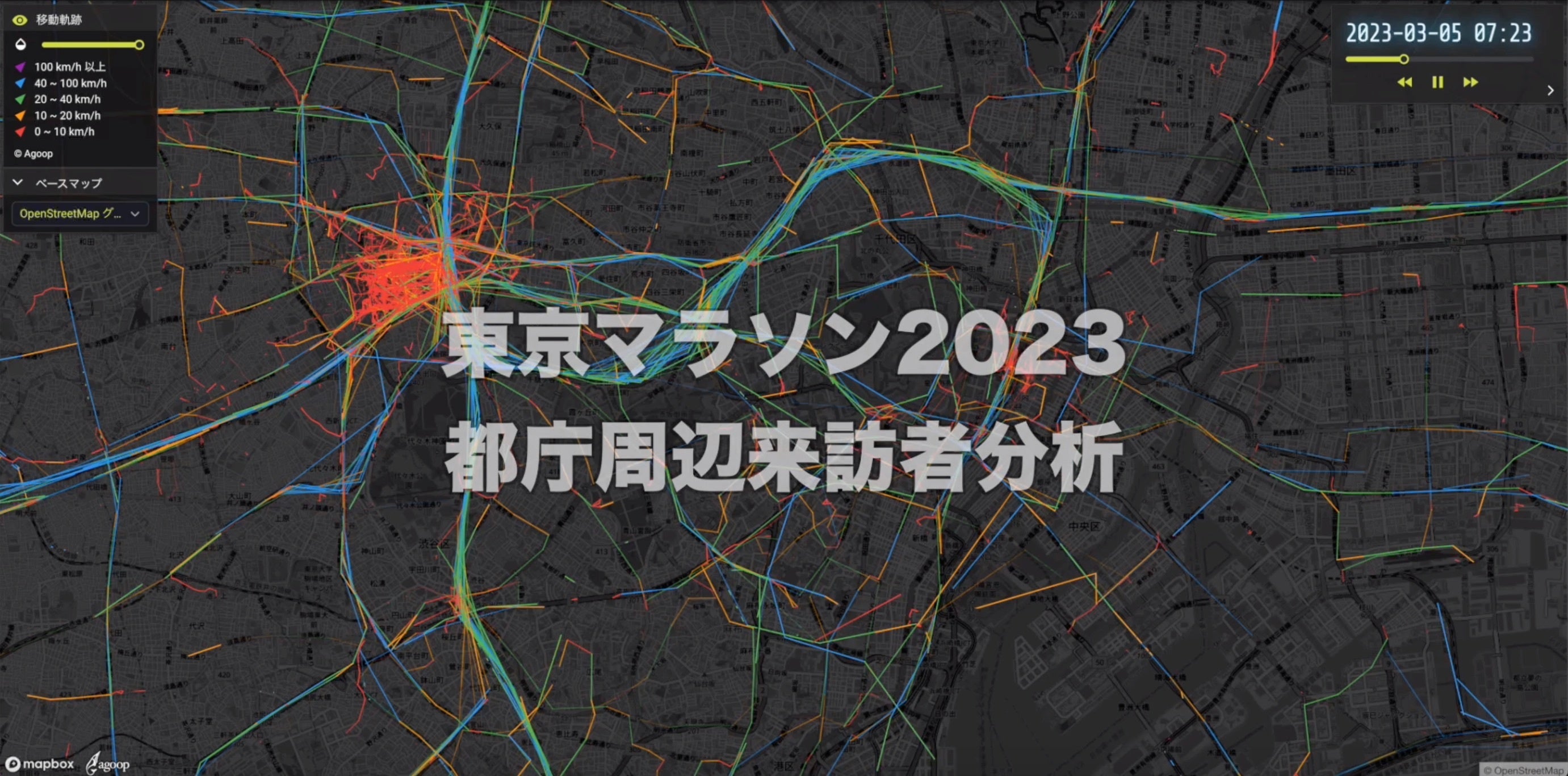 第1弾として、2023年3月5日(日)に開催された「東京マラソン2023」と2023年1月25日(水)に発生した「新名神高速道路の大雪立ち往生」、2022年11月6日(日)に開催された「ぎふ信長まつり」の可視化事例を掲載しています。