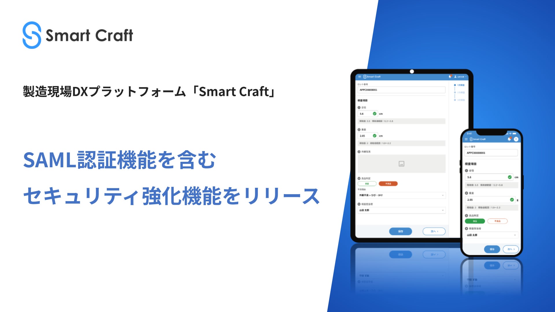 製造現場DXプラットフォーム「Smart Craft」、SAML認証を含むセキュリティ強化機能をリリース