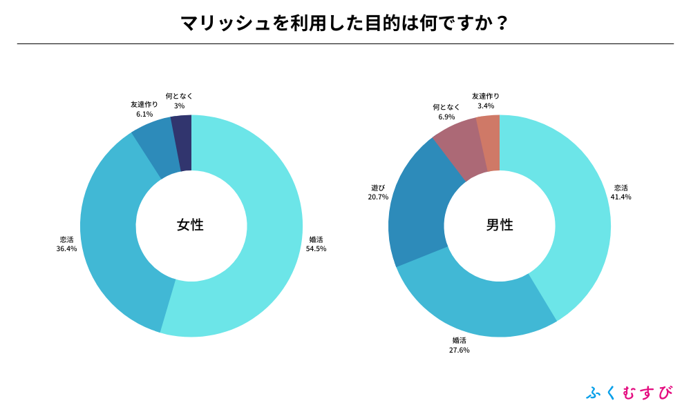 ・女性がマリッシュを利用した目的は、婚活が1位、恋活が2位となりました。