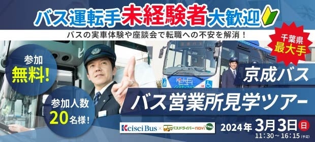 【千葉県最大手】バス運転手への一歩を踏み出そう!『京成バス 新都心営業所見学ツアー』を2024年3月3日(日)開催!
