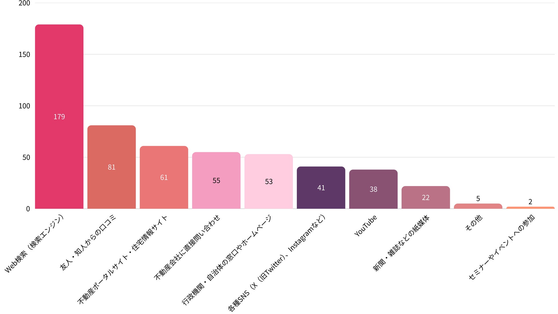 ウェブを情報収集の起点とするオーナーが多数を占めている。検索エンジンから空き家に関する基本情報や具体的な売却事例などを調べるケースが多いと考えられる。
