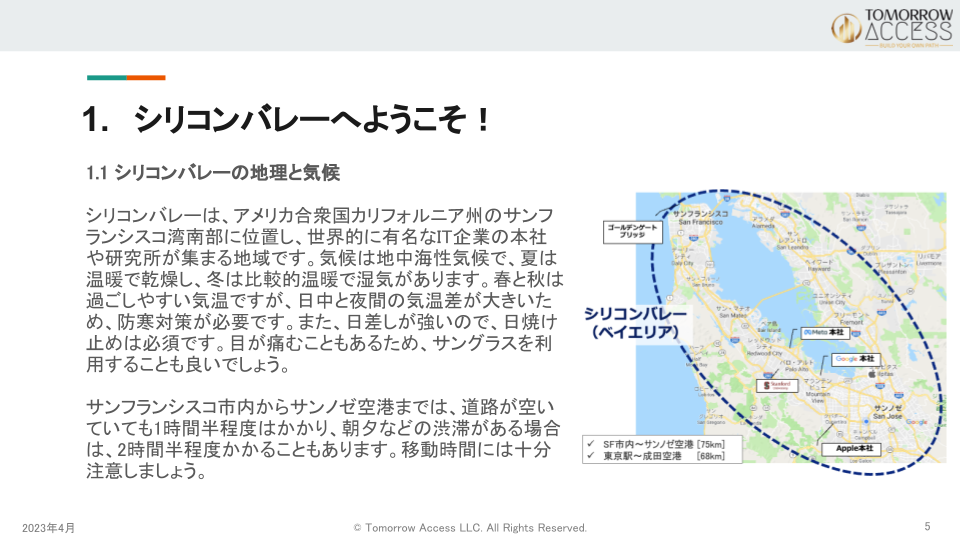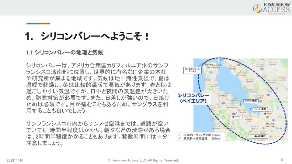 【シリコンバレー出張ガイドブック2023 コンテンツ内容】