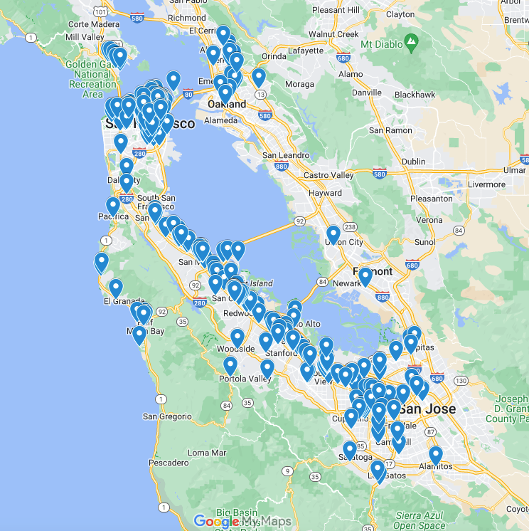 ▼シリコンバレー大手IT企業オフィス見学25社(Googleマップ、一覧表)