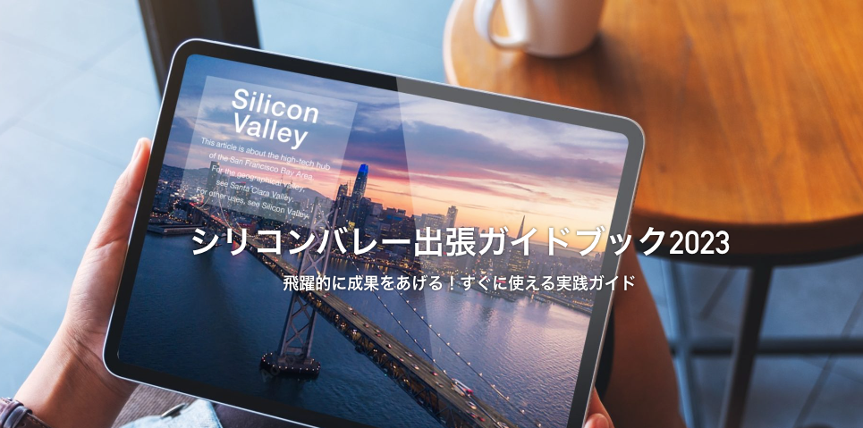 シリコンバレーへの海外出張を命じられた時、不安に感じられる方も多いのではないでしょうか?下調べや準備にかなりの時間を要する方も多いと思います。そこで限られた出張時間を有効活用できる「シリコンバレー出張ガイドブック2023」をリリースしました。すぐに使える出張サポートが満載で、業務効率を飛躍的に向上させることができます!