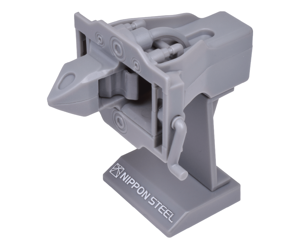 本商品は、日本製鉄株式会社(本社:東京都千代田区、代表取締役社長:今井正) 交通産機品企画室の監修のもと、本物と同じ構造で連結・解放の動作が可能な精密ミニチュアとして企画いたしました。