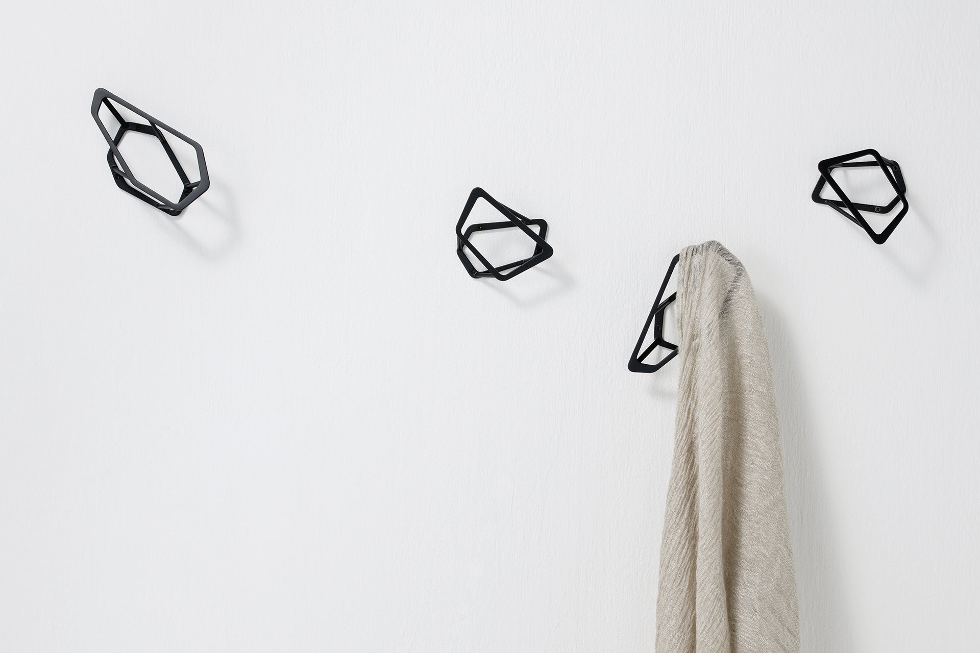 光を受けると、壁に映る影までがデザインの一部となり、何も掛けていない時でもオブジェのように空間を彩ります。