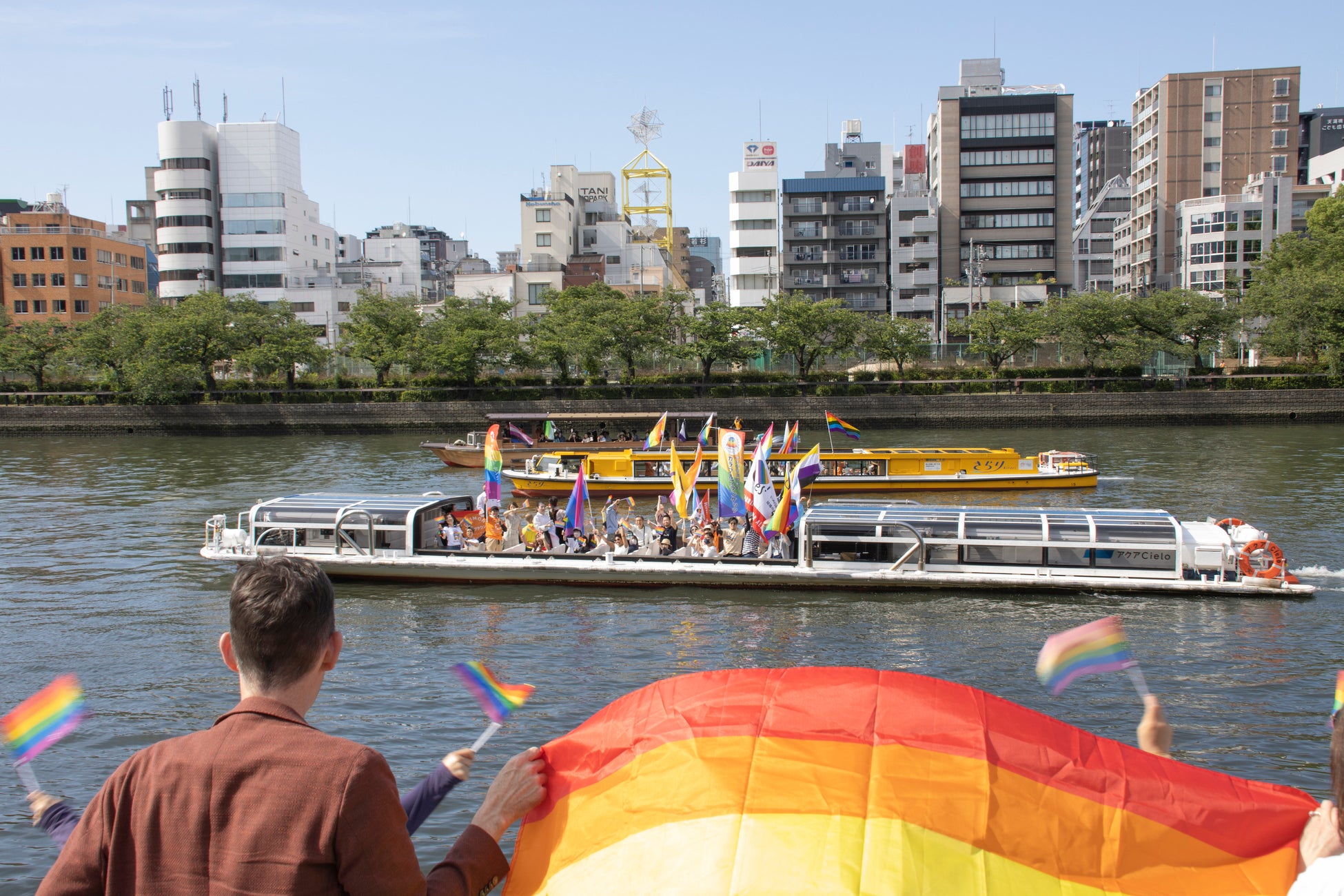 LGBTQ支援の虹の旗を掲げた船で天満橋周辺を一周 “水都大阪”にちなんだ日本で唯一の水上プライドイベント