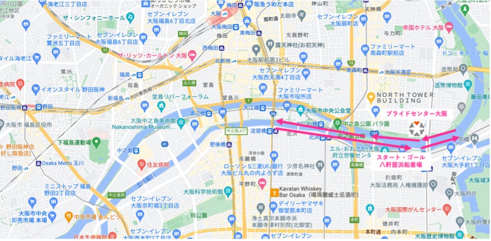 当日は、「川の駅はちけんや」にて、トークセッションや出航セレモニーなどを実施後、プライドセンター大阪の対岸に位置する「八軒家浜」から船を出し、LGBTQ支援の意味をもつ6色の虹の旗や、様々なプライドフラッグを掲げて天満橋周辺を一周するメインプログラム「水上プライドパレード」を行います。