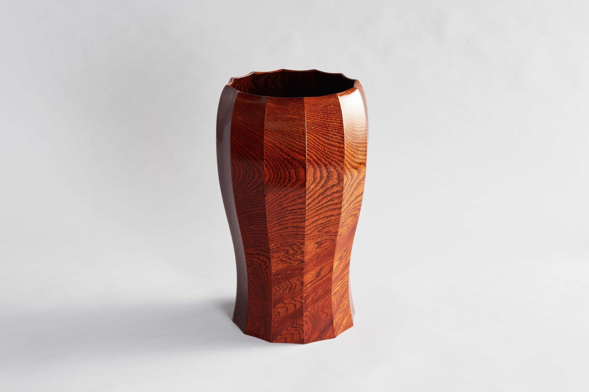 道具づくりから手掛け、木との対話を重ねながら制作。幾重にも塗りを重ねて研ぎ出し、表面を磨かずに仕上げることで、大子漆の魅力を最大限に引き出した素地の質感が際立ちます。
