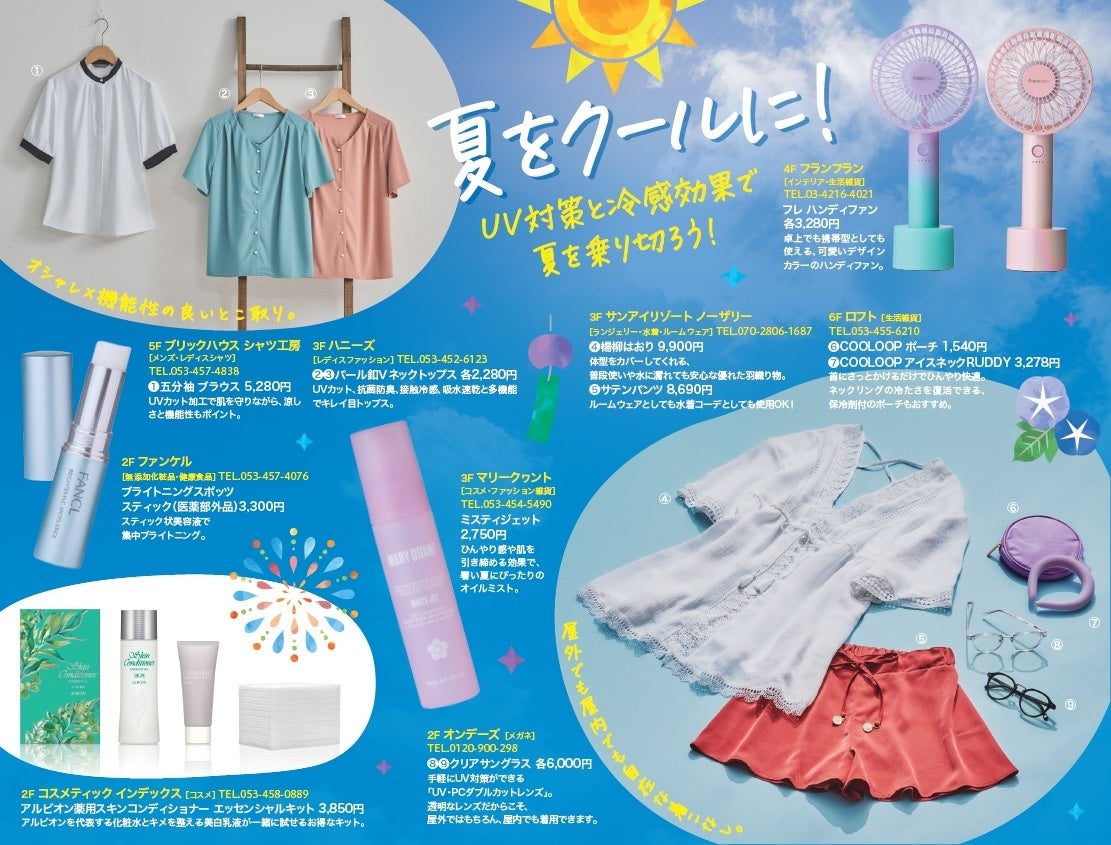 UV対策や冷感効果のあるアイテム、イートインで楽しめるひんやり美味しいスイーツもご紹介。さらに地下階「FRESH MARKET」リニューアルショップ情報をお届けします。