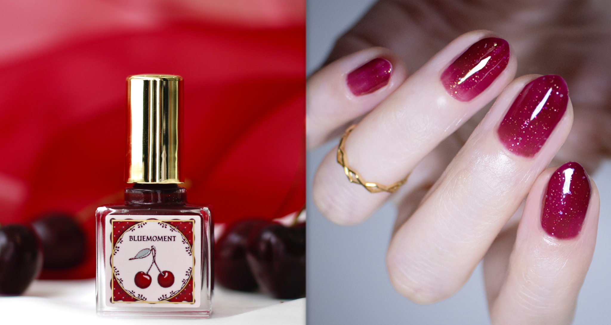 実まで真紅に染まった果実、アメリカンチェリーからインスピレーションを得た、グリッター・レッド。たっぷりのラメと深みあるレッドカラーがあなたの美徳を表現します。