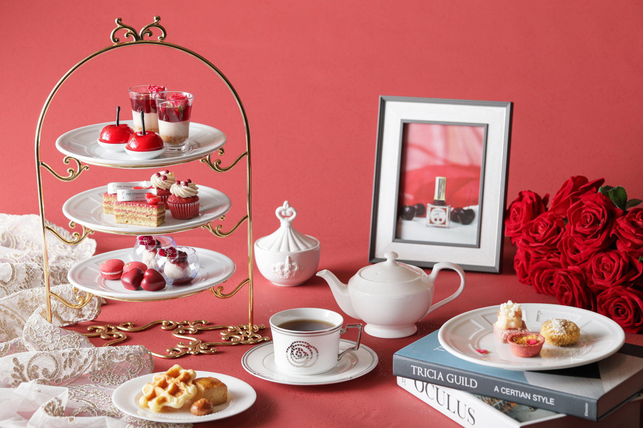 今回の限定コレクションのメインカラーは「つやめく美徳」。ストリングスホテル 名古屋では「つやめく美徳」に込められた「内面から輝く美しさを伝えたい」という想いを表現するアフタヌーンティーメニューを構成。