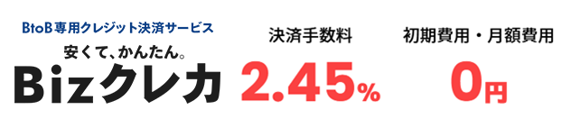 「Bizクレカ」は、BtoB事業者様がデジタル化への第一歩としてクレジットカード決済を手軽にご導入いただけるよう初期費用・月額費用0円、業界最安値水準の決済手数料2.45%※2で提供するクレジットカード決済サービスです。システム開発が不要でかんたんに導入可能なメール決済・URLリンク決済を提供しており、月3回締め3回払いの早期入金による資金繰りの改善もサポートいたします。英語版決済ページもご用意しておりますので、海外とのお取引にもご利用いただけます。