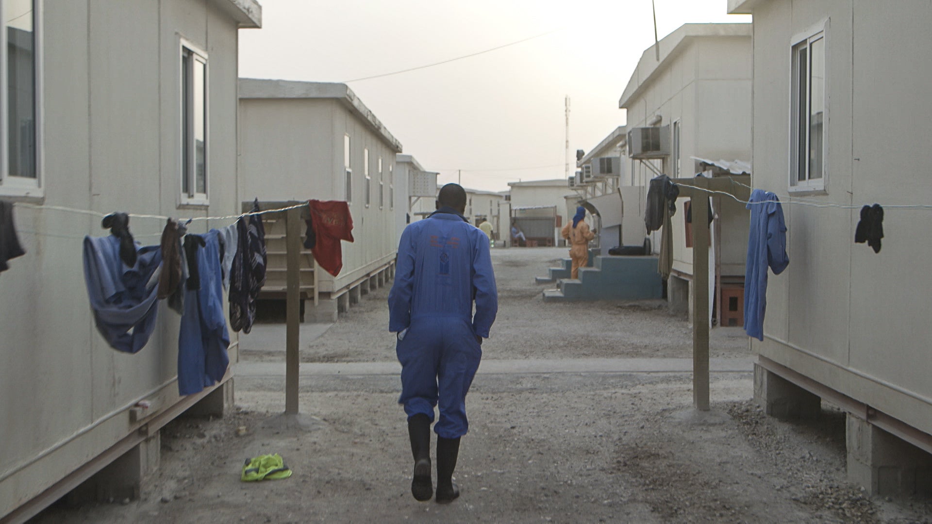 カタールでは、総人口の60%を移民労働者が占めている。彼らの出身国は、インド、ネパール、バングラデシュ、フィリピン、また近年ではアフリカからの移民労働者も増えている。ほとんどが貧しい暮らしから最低レベルの仕事を求めて、W杯需要に沸く裕福な国カタールを目指してやって来る。だがそこには、わずかな賃金で長時間働き、法律により都市部から離れた労働者キャンプで暮らさざるを得ない移民労働者たちの現実がある。その実態に本映画で初めてカメラが迫った。