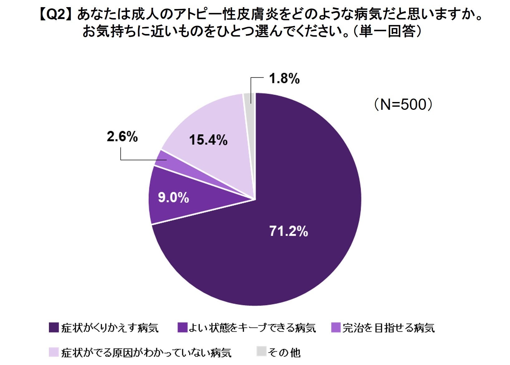 2. アトピー性皮膚炎は「症状がくりかえす病気」と考えている患者さんが71.2%