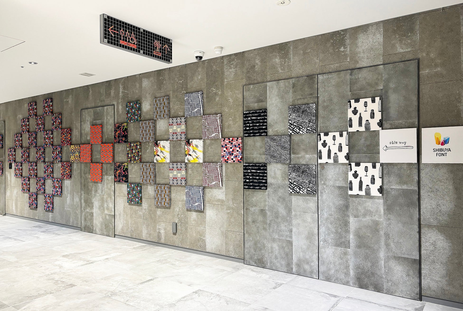 ①シブヤフォントのアートを採用した幅22mm、高さ3mの巨大アートウォール