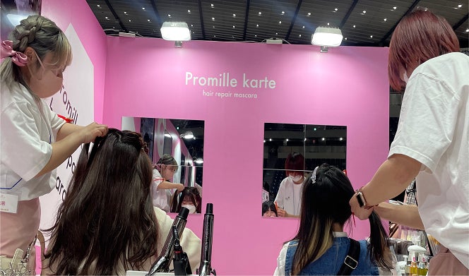また、フラッグシップショップ&サロン『Promille salon(プロミルサロン)』の美容師によるヘアアレンジ無料体験コーナーでは多くの来場者にヘアアレンジを行いました。