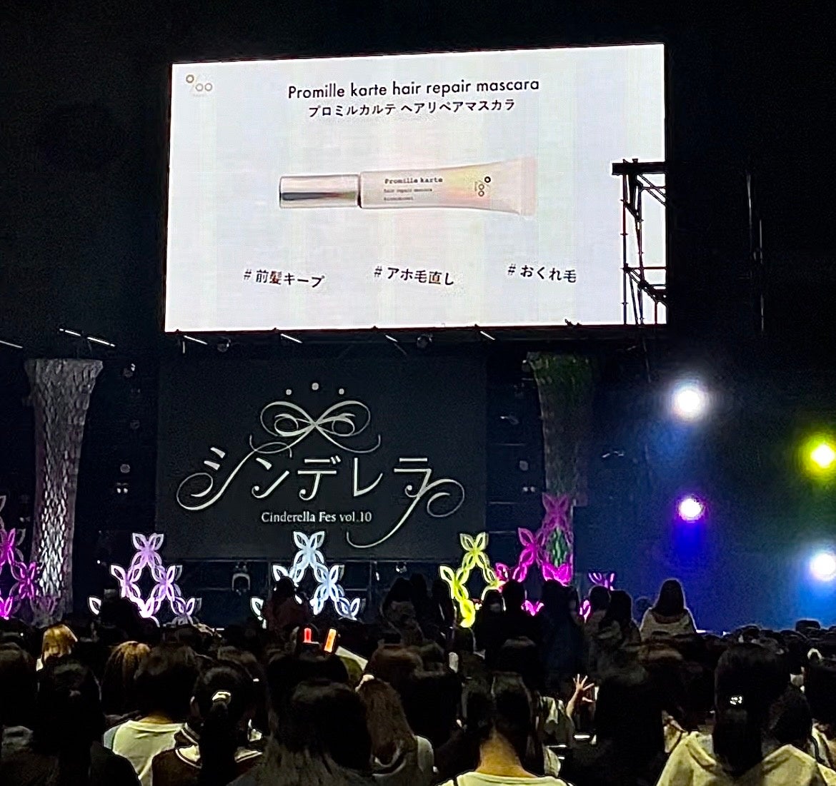 「自分らしい生き方発見」をコンセプトとした『シンデレラフェス』は、JKによるJKのための、未来にワクワクする「進路×エンターテインメントフェス」です。3年ぶりの有観客開催となる今回は14歳〜20歳の女性1万人以上が来場し、「自分を遊ぼう!」をテーマに新商品・新サービスを体感できるブースのほか、出演ゲスト100名以上の超豪華ステージでは話題のアーティストによるスペシャルLIVEやスペシャルトークステージが実施されました。PromilleブースではSNSプレゼントキャンペーンの実施に加え、美容師によるヘアアレンジ無料体験コーナーを設置、さらに、メインステージのモニターでは『プロミルカルテ ヘアリペアマスカラ』のCMを放映し、大盛況に終えることができました。当日ご来場頂いた皆様に感謝申し上げます。