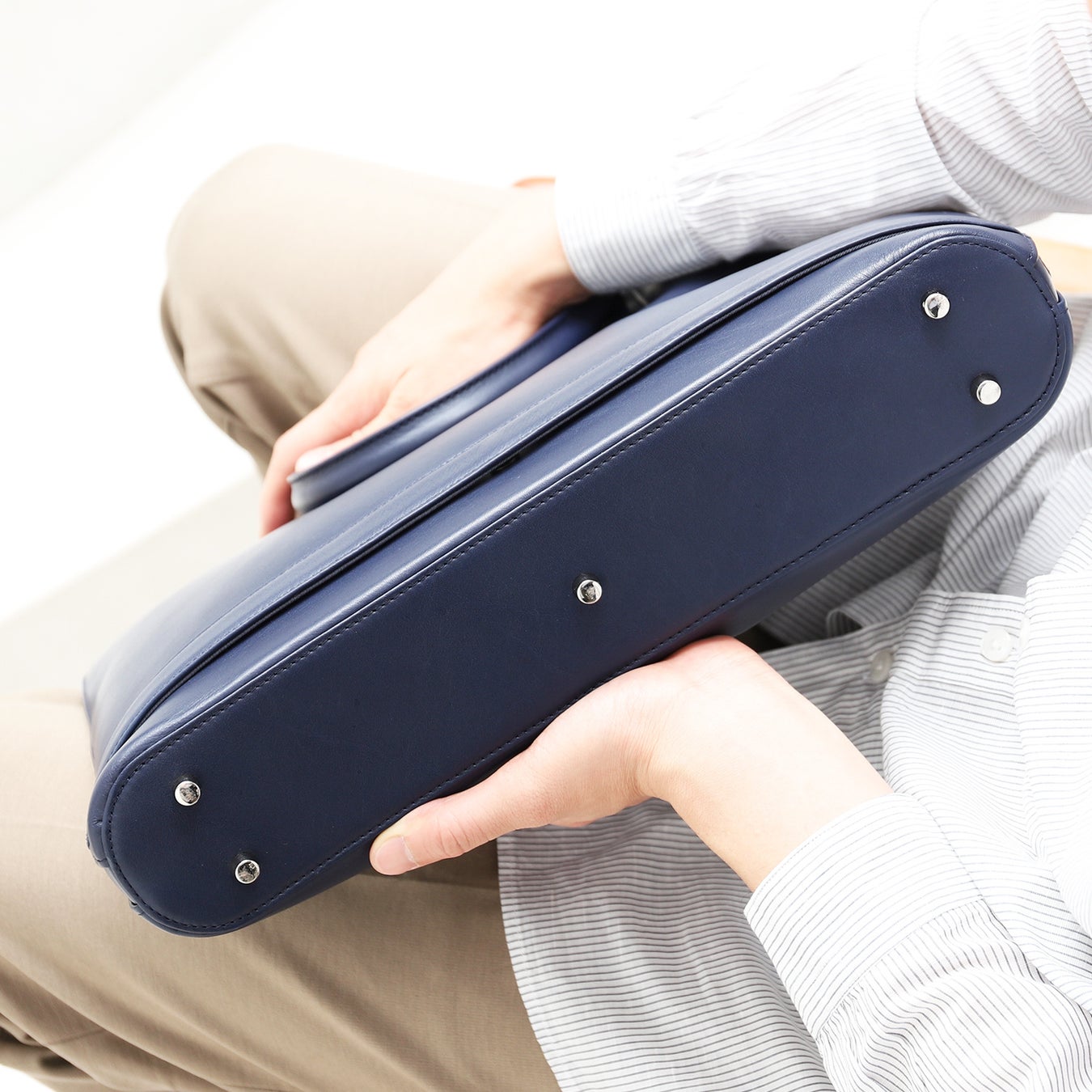 通勤やオフィス間の移動時でも、軽快で取り回しが良いのでストレスフリーです。また、とっさの電話などで床に置いても自立するように設計しました。