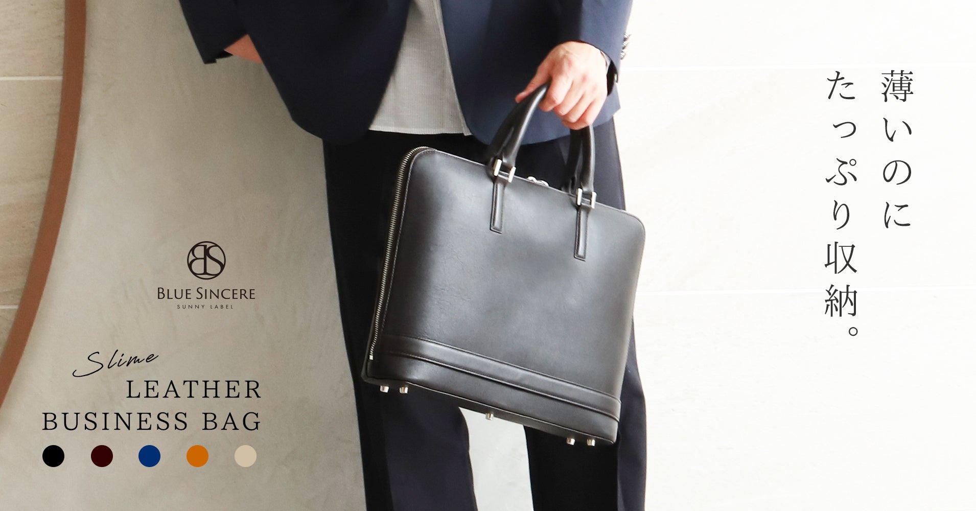 BLUE SINCERE(ブルーシンシア)「ガバッと開く薄型ビジネスバッグ」ビジネスレザーバッグ “EQUES(エクエス)" RT3 新発売