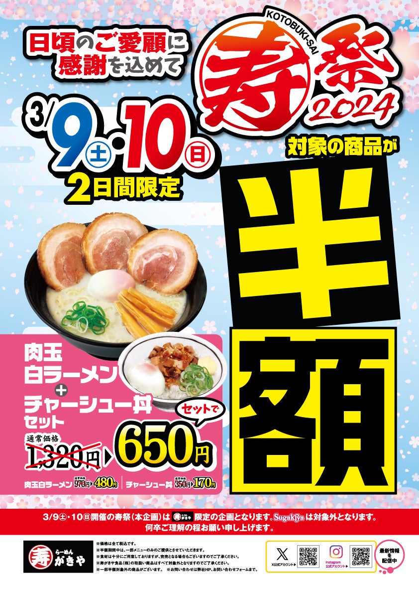 なお、別ブランドの「寿がきや」23店舗におきましても4月上旬の価格改定を予定しております。